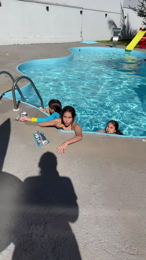 Ela ficou com medo e jogou o celular na piscina