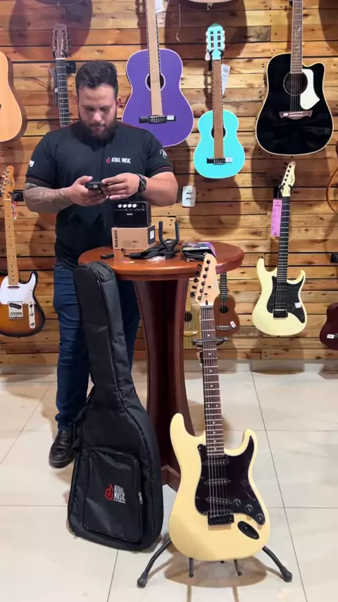 Super oferta na Atual Music Black triday Promoção inexplicável Guitarra, capa, afinador, cabo, palhetas, suporte chão, suporte de parede e caixa de som Por apenas R$1.100,00 em 10x sem juros! Enviamos para todo o Brasil! #guitarra #stratocaster #ofertas #BlackFriday