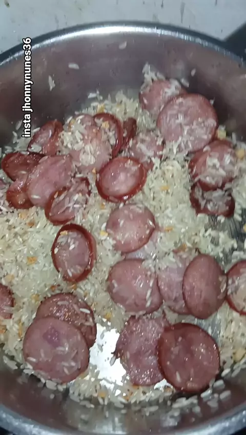 cardápio de hoje arroz de preguiçoso com linguiça calabresa #receitaboa #FamiliaÉTudo #minhasprincesa