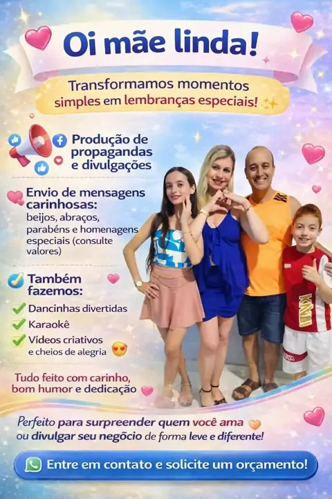 Somos: "Oi Mãe Linda Oficial".🤩 ✨Influencers digitais. ❤️Criamos vídeos de carinho, parabéns, danças, propagandas e muito mais... " Só pedir!" 😉