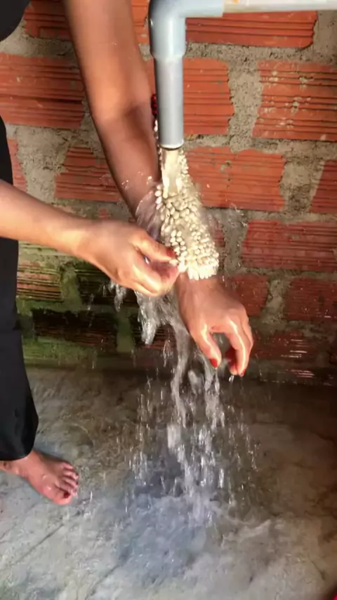 Ela derrama água em sua mão onde o carrapato morde e remove-o # piolho # capcut # fofo #