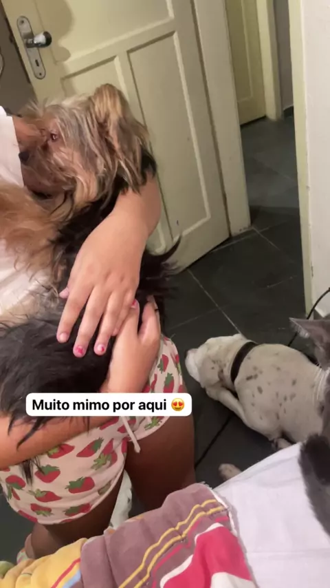 Um pitbull com 1 irmão yorkshire e 1 irmão gatinho Não é raça, é como se cria 💙