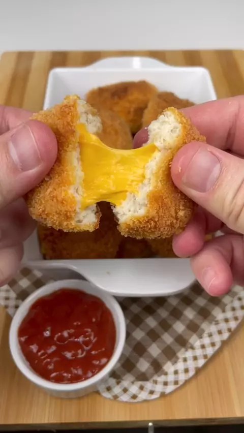 NUGGET RECHEADO COM QUEIJO CHEDDAR #Receita #receitas #receitaboa #Nugget
