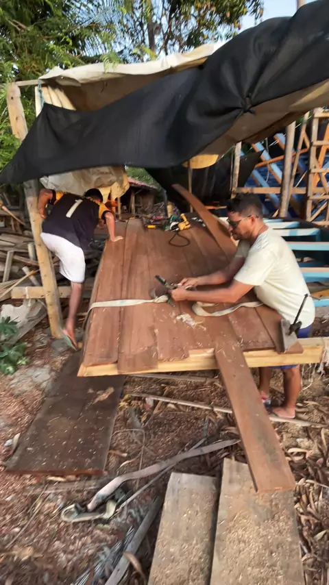 Trabalho no estaleiro Evilásio #Vem2026NoKwai #barco #MAR #Praia #Carpinteiro
