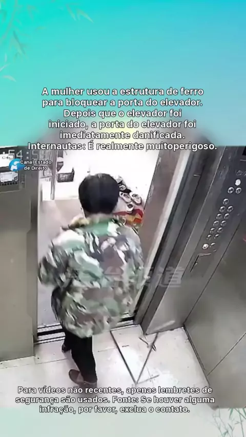 A mulher usou uma estrutura de ferro para bloquear a porta do elevador, e a porta do elevador foi danificada instantaneamente depois que o elevador foi iniciado. Internautas: É realmente muito perigoso.