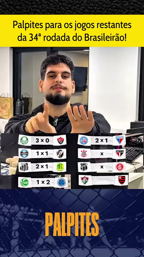 Palpites para os jogos da 34ª rodada do Brasileirão: Fluminense x Flamengo, Gremio x Vasco, Corinthians x Sao Paulo, Juventude x Cruzeiro, Bahia x Fortaleza!! #fluminensexflamengo #CorinthiansxSãoPaulo #brasileirão2025 #desafios11 #DesafiosKwaiCut