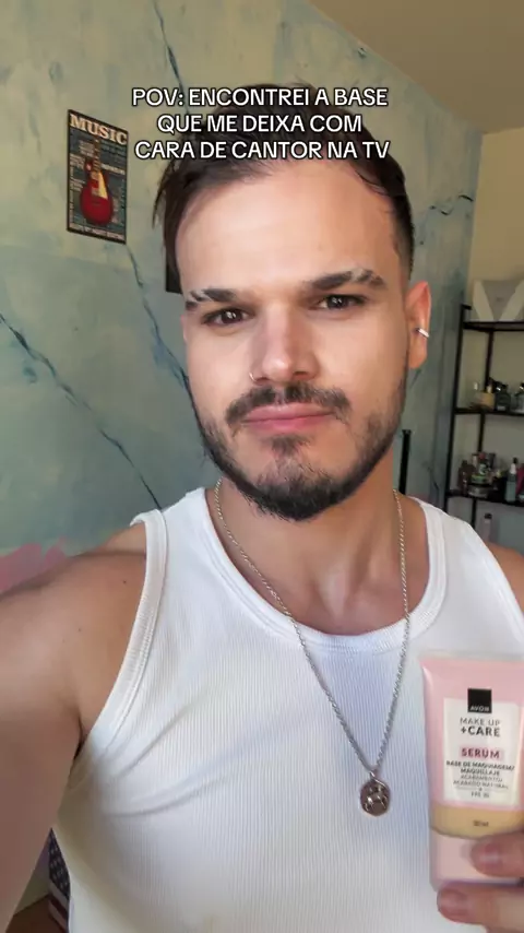 E ainda fica com um toque bem natural homens! 👌🏻 🛒 Disponível no link da bio (Minha Loja), corre pq vai acabar ⬆️ - FPS 30 - Trata Sua Pele - Acabamento Natural A melhor de todas 🫢 #BaseSerum #Avon #Cantor #MakeMasculina