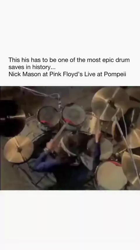 The clip comes from Pink Floyd – Live at Pompeii. The music was filmed in the ancient Roman amphitheatre of Pompeii in October 1971, and the finished film was released in 1972. The band performed in an empty arena, which gives the whole thing a very atmospheric and almost other-worldly feel. In the moment shown, drummer Nick Mason drops a drumstick during “Echoes.” He immediately picks up a new one and continues playing without losing the beat. It’s a smooth recovery that shows how focused and