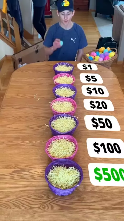 Crianças e família jogar jogo de mesa engraçado com ovos de Páscoa e cestas para prêmios em dinheiro. fins de entretenimento apenas) # familygamenight # familygames # partygame # gamenight # boardgames # familythings