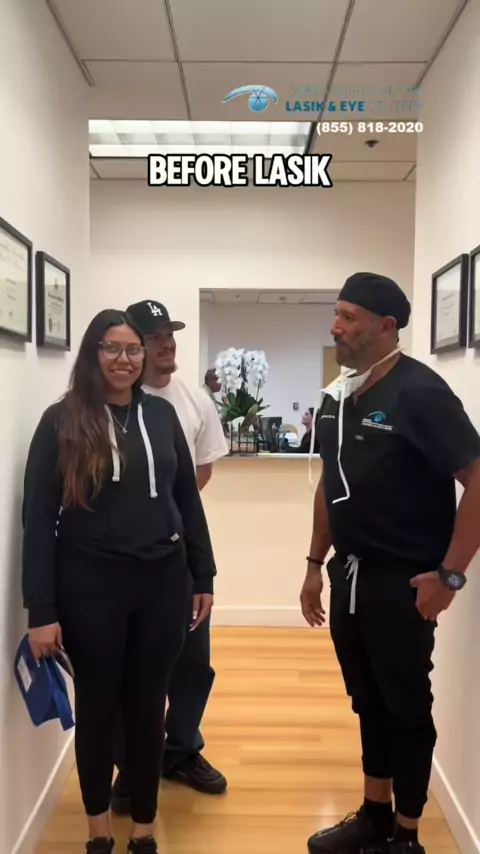 Imediatamente antes e após a cirurgia de olho LASIK para