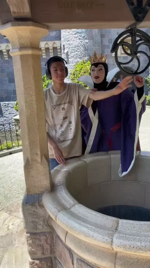 A Rainha Não Tão Má Pedendo Para Thomas Segurar Sua Mão # Autism # AutismAwareness # AutismAcceptance # ASD # Specialneeds # Disney # Disneyparks # Disneyland # disney # disney100 # disney # disney100 # snowwhite # evilqueen # # page