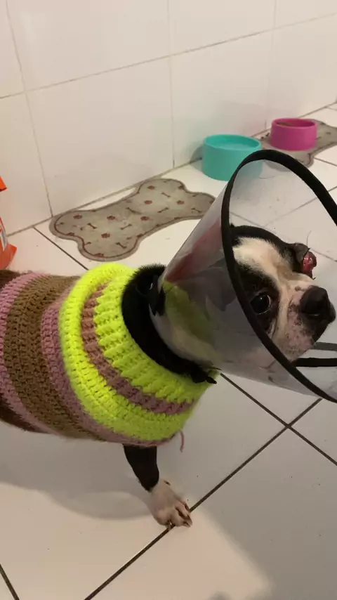Juju sofreu um acidente durante uma briga com a Panqueca. Esta se recuperando. Com fé vai sarar. #bostonterrier