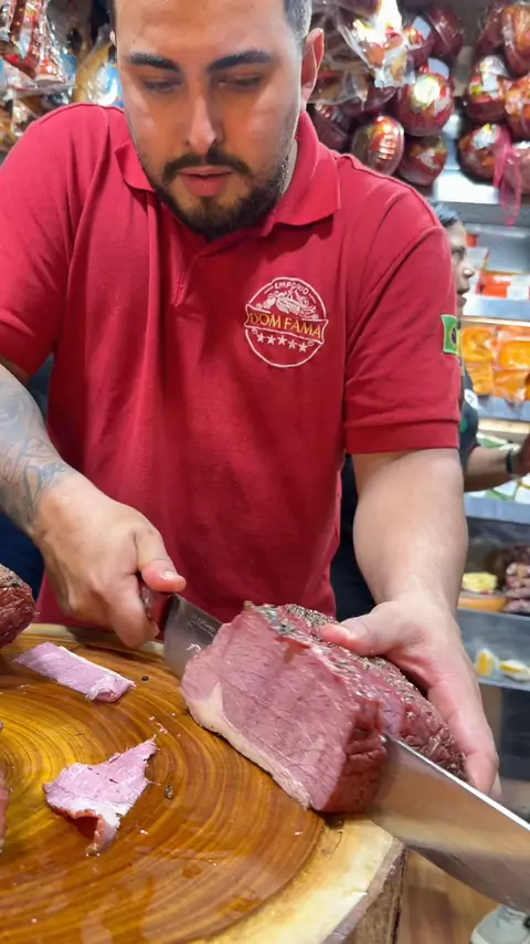 Pastrami artesanal! Coxão duro temperado e defumado na lenha de pecan 😍 Pronto pra servir frio em tábuas de frios ou em lanches — e se quiser elevar o sabor, é só dar uma leve passada na frigideira e finalizar com alho negro… fica simplesmente incrível! 🤤✨ #carne #saopaulo #food