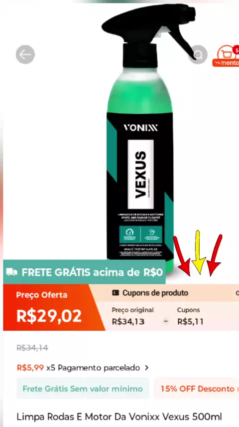 Limpa Rodas E Motor Da Vonixx Vexus 500ml e obtenha-o no Kwai agora! #festakwai