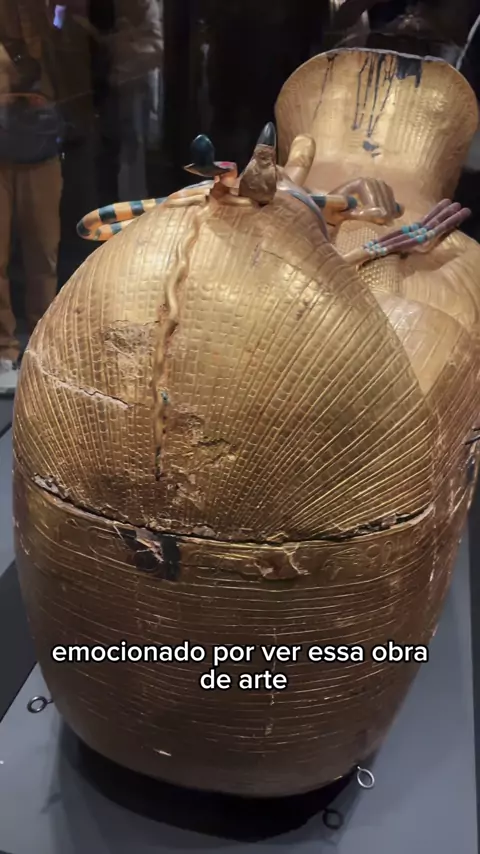 O sarcófago de Tutankhamun é uma das relíquias mais impressionantes do Antigo Egito: feito de ouro e ricamente decorado, ele guardava a múmia do jovem faraó e simboliza poder, proteção e a crença na vida após a morte #tutankhamun #sarcofago #reliquia #ouro #morte