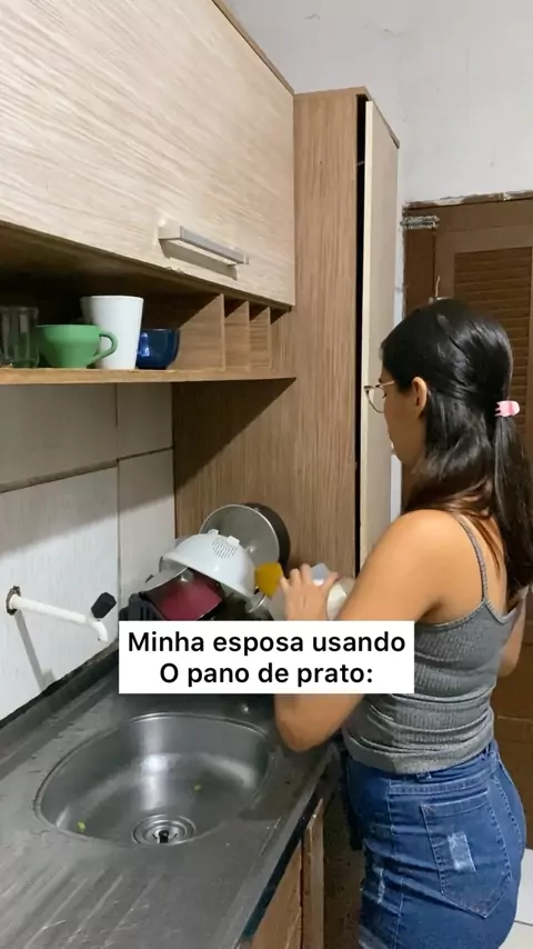 A esposa usando o pano de prato x o marido usando o pano de prato. #humor #viral #casal #viralizou