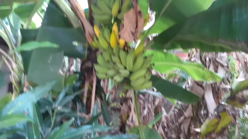 6 meses a 1 ano para dar banana. Mamão 8 meses a 1 ano. Coqueiro 2 anos em média. Plantas que ocupam pouco espaço.