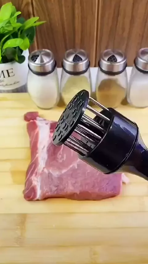 Martelo amassador de carnes em agulhas, cor branca. Perfeito para amaciar carnes, facilitar a penetração de temperos e deixar seus pratos mais saborosos. Produto resistente, fácil de usar e ideal para churrasco, cozinha doméstica e profissional. Compacto e prático para manuseio eficiente. #MarteloAmassador #AmassadorDeCarnes #Cozinha #Churrasco #UtensíliosDeCozinha