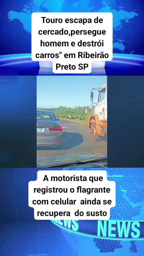Touro escapa de cercado,persegue homem e destrói carros em Ribeirão Preto SP #touro #carro #homem #cercado #motorista