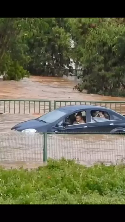 Imprudencia! Acho que ficou... Jovens furam bloqueio e arriscam atravessar com carro, uma área alagada na rotatória do Heliporto em Montes Claros. veja o vídeo! #mocéolugar #moccity #montesclarosmg