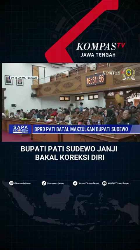KOMPAS.TV - Bupati Pati, Sudewo, merespons keputusan DPRD yang tidak merekomendasikan pemakzulan dirinya. Sudewo berjanji menginstropeksi diri dan meningkatkan kinerja. Bupati Pati, Sudewo, bilang hasil Pansus Hak Angket menjadi bahan baginya untuk mengoreksi diri. Dia berkomitmen meningkatkan kinerja pemerintahan. Sudewo mengajak semua pihak, baik yang pro maupun kontra, bergandengan tangan bersama membangun Kabupaten Pati agar lebih baik. #bupatipati #sudewo #pati #sudewo #berita
