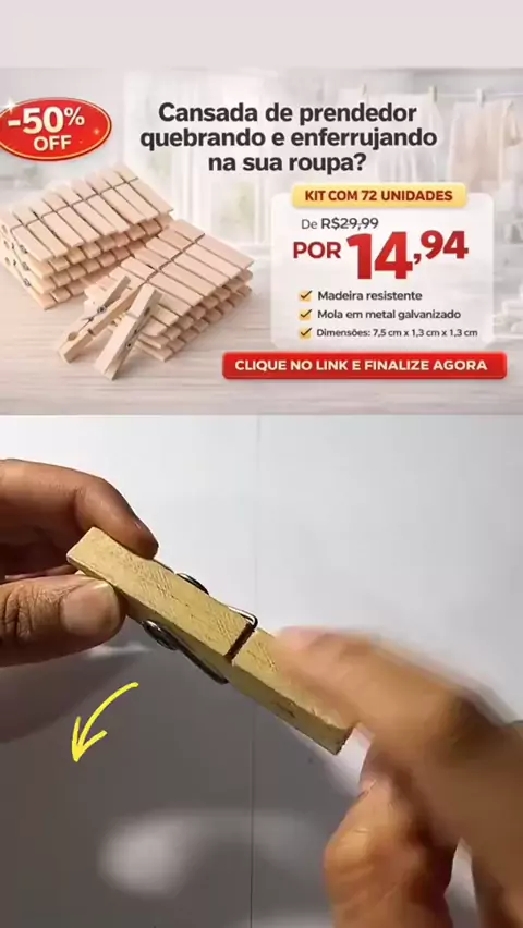 Kit Prendedor de Roupas Madeira , 72 Unidades