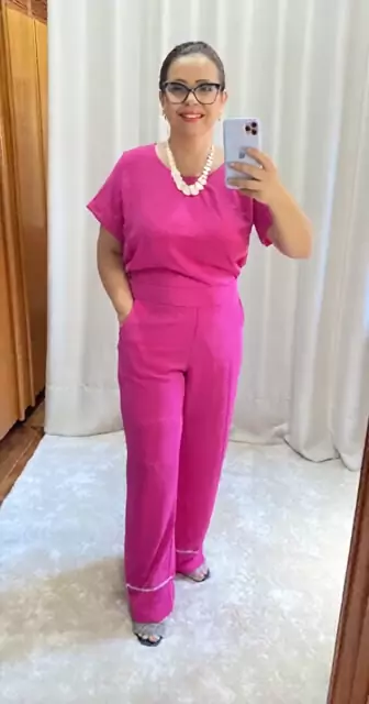 Conjunto com detalhes em ponto palito.
