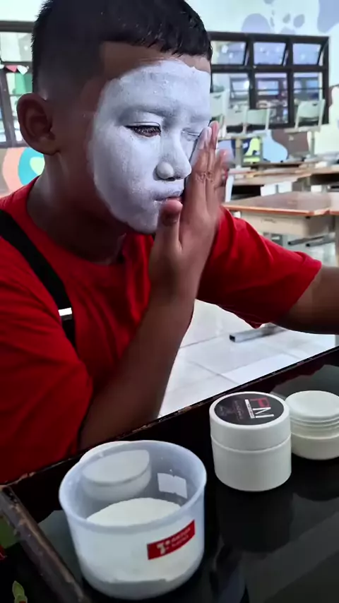 Siswa sekolah dasar yang mencoba makeup sendiri #pantomim #pantomimindonesia #pantomime