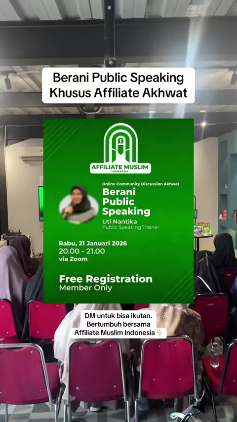 Berani bicara itu bisa dipelajari. Bukan soal bakat, tapi latihan & keberanian yang dibangun pelan-pelan. Yuk ikuti Affiliate Muslim Indonesia - Online Community Discussion Akhwat “Berani Public Speaking” bersama Uti Nantika – Public Speaking Trainer 🗓 Rabu, 21 Januari 2026 ⏰ 20.00–21.00 WIB 📍 Via Zoom ✨ Free registration – Member only.#affiliatemuslim#affiliatemuslimindonesia#belajaraffiliate#affiliatemuslimcommunity#kelaspublicspeaking