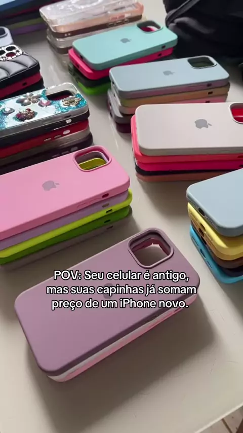 Prioridades, né amores? 😂 O celular pode até estar pedindo aposentadoria, mas o figurino dele tá em dia! Quem também já gastou tanto em capinha que, se somar tudo, dava pra comprar o modelo do ano? 💸📱 #case #caseiphone #capinhas #coleção #foryou