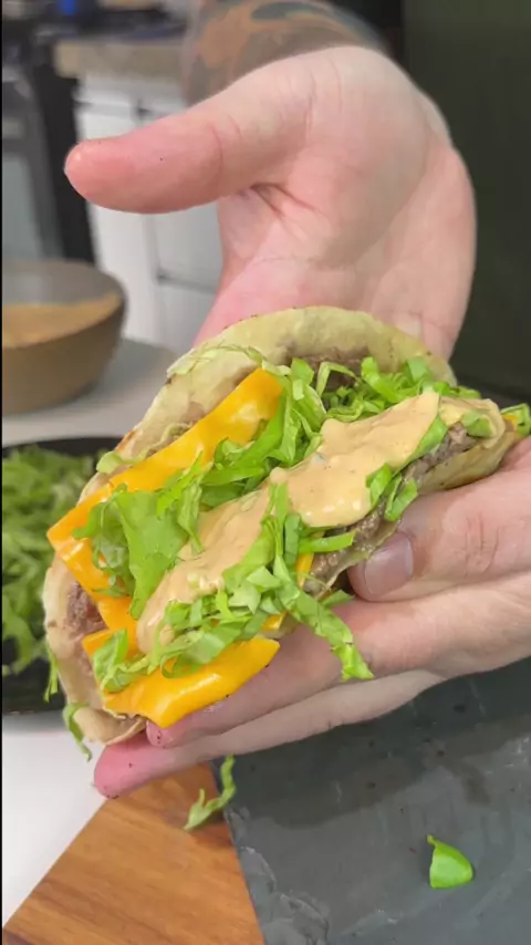 Ta todo mundo fazendo essa trend do Taco de Big Mac e ÓBVIO que eu tinha que testar né? Já adianto que é MARAVILHOSO porque é bem fácil de fazer 🤩🤩 Ingredientes: - 100g de carne pra casa tortilha - 1 tortilha - queijo cheddar - alface americano Molho: - 1 pecado de picles - 2c de sopa da água do picles - 4c de sopa de maionese - 1c de sopa de ketchup - 1c de sopa de mostarda - 1c de chá de páprica doce #bigmac #lanche #hamburguer #receita #wrap