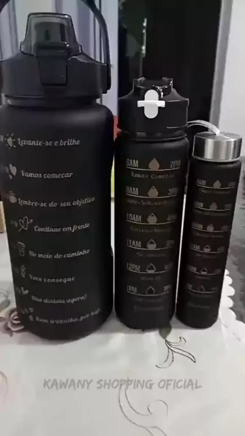 KIT TRÊS GARRAFAS DE ÁGUA MASCULINA SQUEEZE MOTIVACIONAL