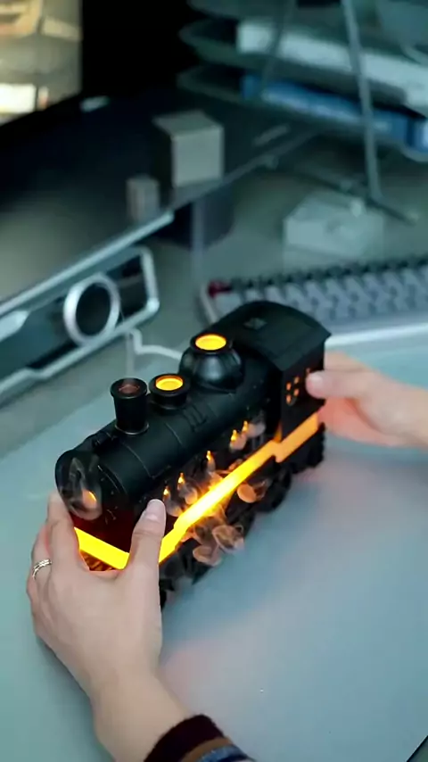 🚂💨 Um difusor de aroma em forma de trem que solta “fumaça” de verdade! #DifusorDeAroma #Umidificador #DecoracaoCriativa #Gadgets #Tecnologia