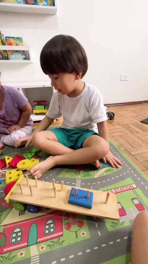 Atividade de encaixar formas geométricas #2anos #tea #autismo #psicopedagogia