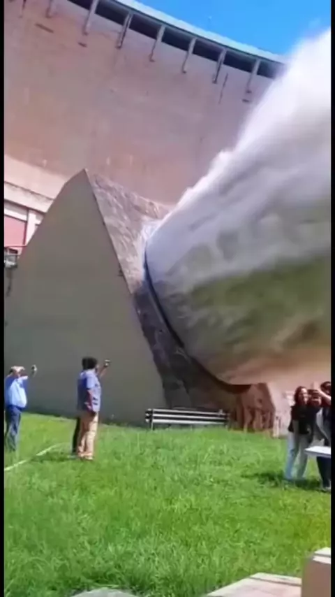 A barragem está liberando água, o que é extremamente espetacular e parece realmente descomprimir. # flood # discharge # release # flood # water # descompressing # # age # viral # dam