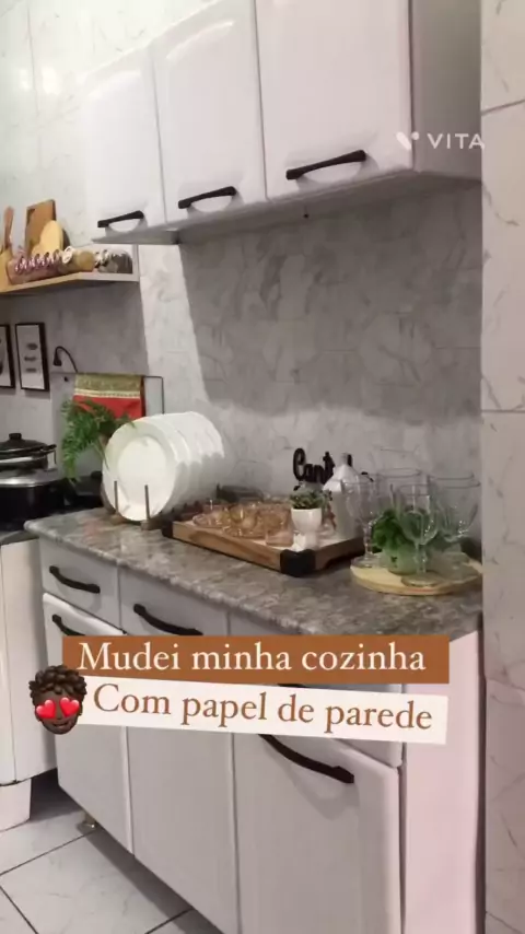 Mais uma transformação na minha cozinha usando apenas papel de parede ❤️🌵🥰 #transformaçao #papeldeparede #decoraçao