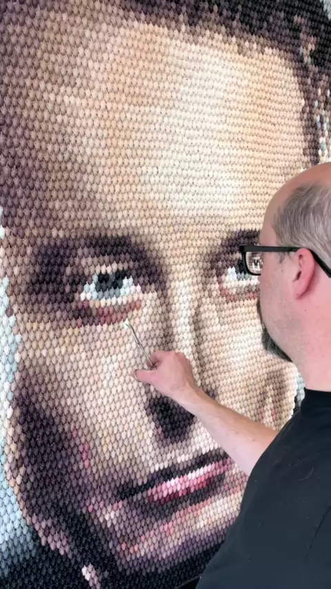The eyes are the window to the soul ๐Ÿ‘๏ธ#ElonMusk composed of 10,000 hand cast and sculpted middle fingers