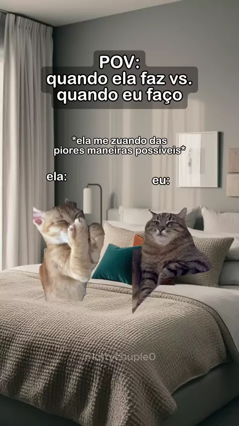 Quando eu faço vs. quando ela faz 😹😹 #casal #gatos #gatinhos #memes #pov