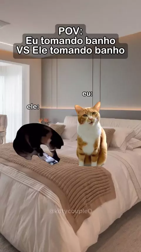 Eu VS Ele tomando banho!! 😹😹 #casal #memes #gatos #gatinhos #pov