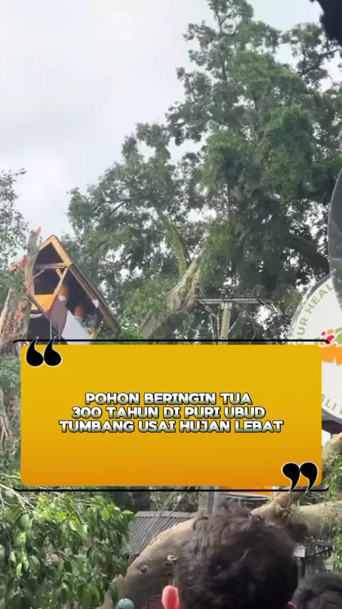 Pohon beringin tua hampir 300 tahun di Puri Ubud tumbang 🌳 Diduga akibat hujan lebat dan angin kencang dalam beberapa hari terakhir. Tidak ada korban jiwa, namun sempat mengganggu aktivitas wisata di pusat Ubud. #News