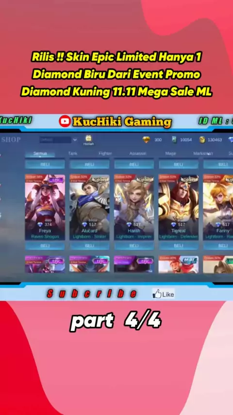 Rilis !! Skin Epic Limited Hanya 1 Diamond Biru Dari Event Promo Diamond Kuning 11.11 Mega Sale ML