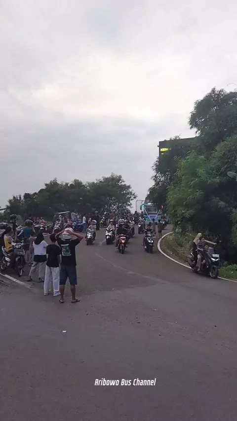 Abah Deni sapa manianya sebelum masuk gerbang tol #bus #basuri #buspariwisata #busmania #snackviral