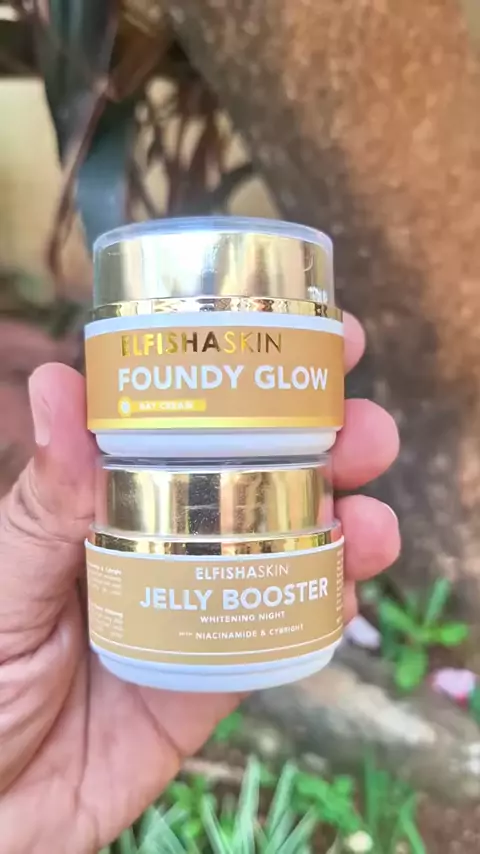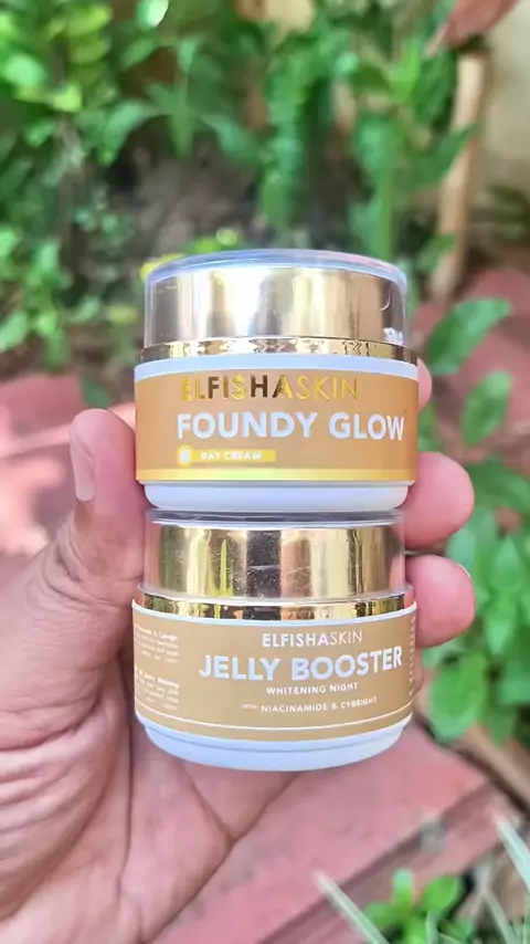 Paket Foundy Glow dan Whitening Night Jally Booster untuk mencerahkan kulit, samarkan flek hitam dan melembabkan kulit#elfishaskin#foundyglow#jellybooster#skincarepencerah