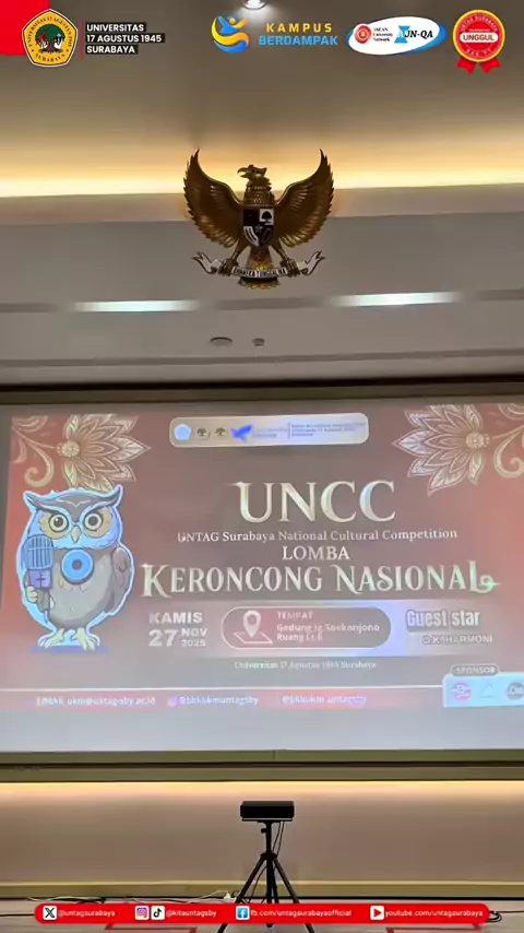 Halo, Sahabat Merah Putih! Kamis, (27/11), Untag Surabaya National Cultural Competition (UNCC) Lomba Keroncong Nasional 2025 kembali menjadi panggung pertemuan talenta dari berbagai penjuru daerah✨ Setiap nada yang diperdengarkan membawa cerita, semangat, dan kecintaan pada musik keroncong. Selamat kepada OK. Irama Emas SMKN 2 Kasihan 2 Yogyakarta atas raihan Juara 1 kategori SMA/sederajat🏆 Terima kasih juga kepada seluruh peserta yang telah menjadikan UNCC 2025 berlangsung meriah dan bermakn...