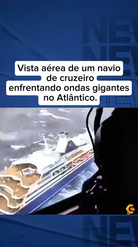 #Notícia Vista aérea de um navio de cruzeiro enfrentando ondas gigantes no Atlântico.