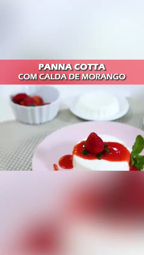 Panna cotta com calda de morango #receita #food #comida #culinária #kwai