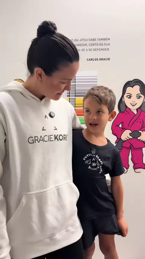 Sempre que posso, reforço a importância da defesa das crianças. Ter uma mãe Faixa Preta é assim 🤣 Ensine suas filhas a se defenderem🥋assim como fazemos com as nossas @Malvino Salvador @Gracie Kore #maedemenina #kyragracie #graciekore #bj #familiagracie #barradatijuca