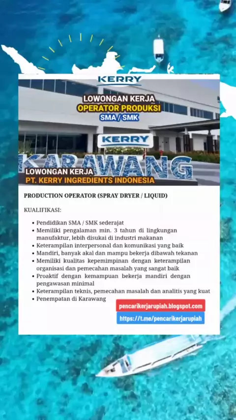 PT Kerry Ingredients Indonesia#ptkerryingredientsindonesia#kerryingredientsindonesia#kerryingredients#lokerptkerryingredientsindonesia#lokerkarawang#karawang#kiickarawang#kiic#lokeroperator#lokeroperatorproduksi#operatorproduksi#lokersmasmk#lokervialink#pencarikerjarupiah#loker#lowongankerja Production Operator Info tersedia di Web / Telegram Pencari Kerja Rupiah Alamat PT. Kerry Ingredients Indonesia Cikarang Plant Jl. Industri Utama Blok SS No. 6 Mekarmukti, Cikarang Utara Bekasi, Jawa Barat...