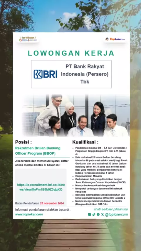 Lowongan Kerja Bank BRI 2024 Cara pendaftaran cek di website www.toploker.com#bankbri#bri#lowongankerja#infoloker#loker#lokerbank#lokerbumn#bumn