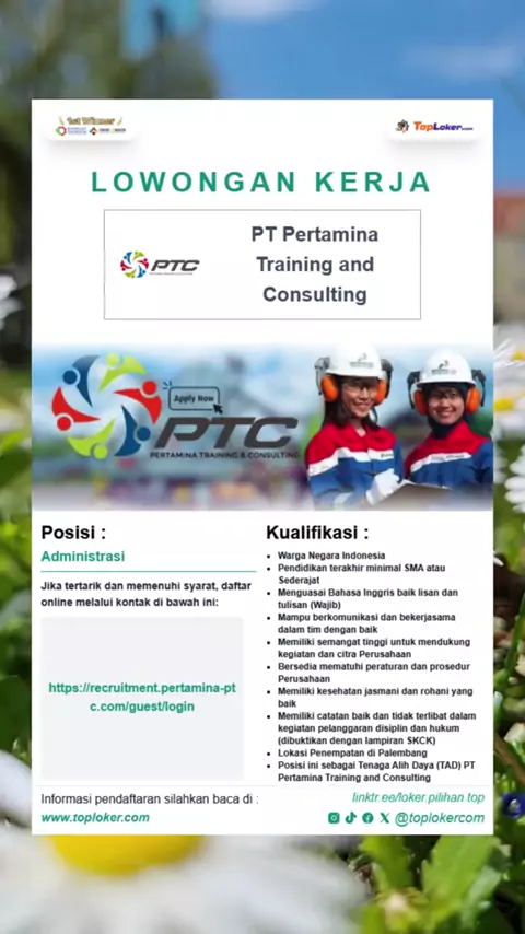 Lowongan Kerja PT Pertamina Training and Consulting! info loker selengkapnya kunjungi website resmi kammi di www.toploker.com#lowongankerja#infoloker#lokerbumn#lokerpertamina#pertamina